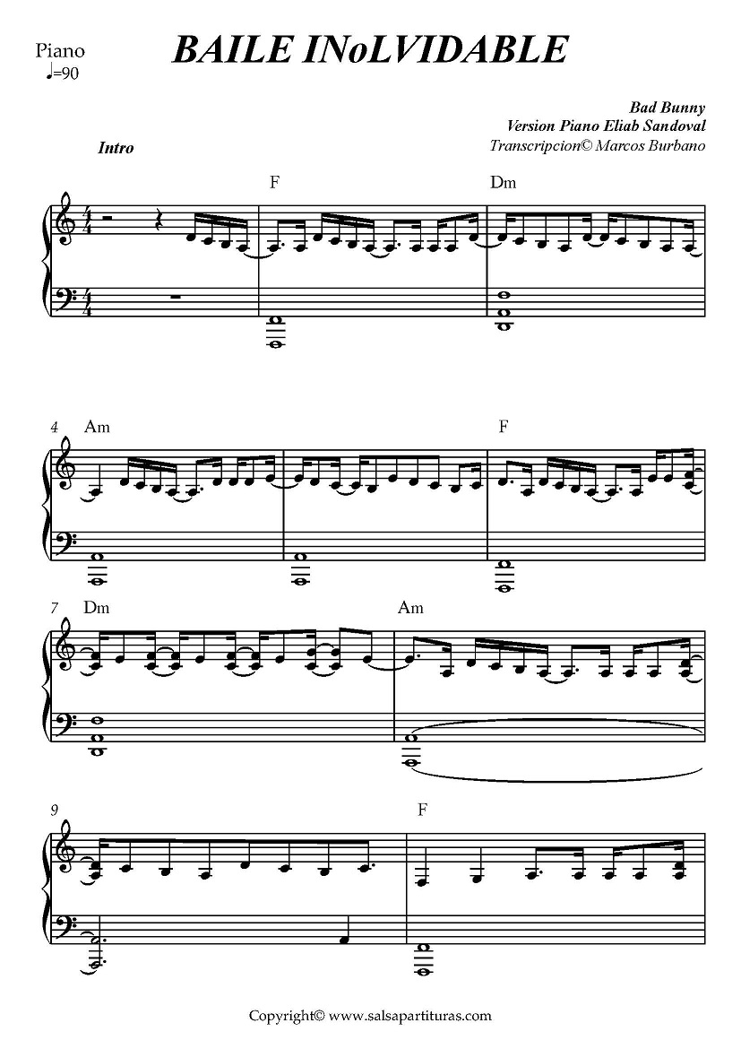 BAILE INOLVIDABLE - BAD BUNNY VERSION PIANO ELIAB SANDOVAL cantidad