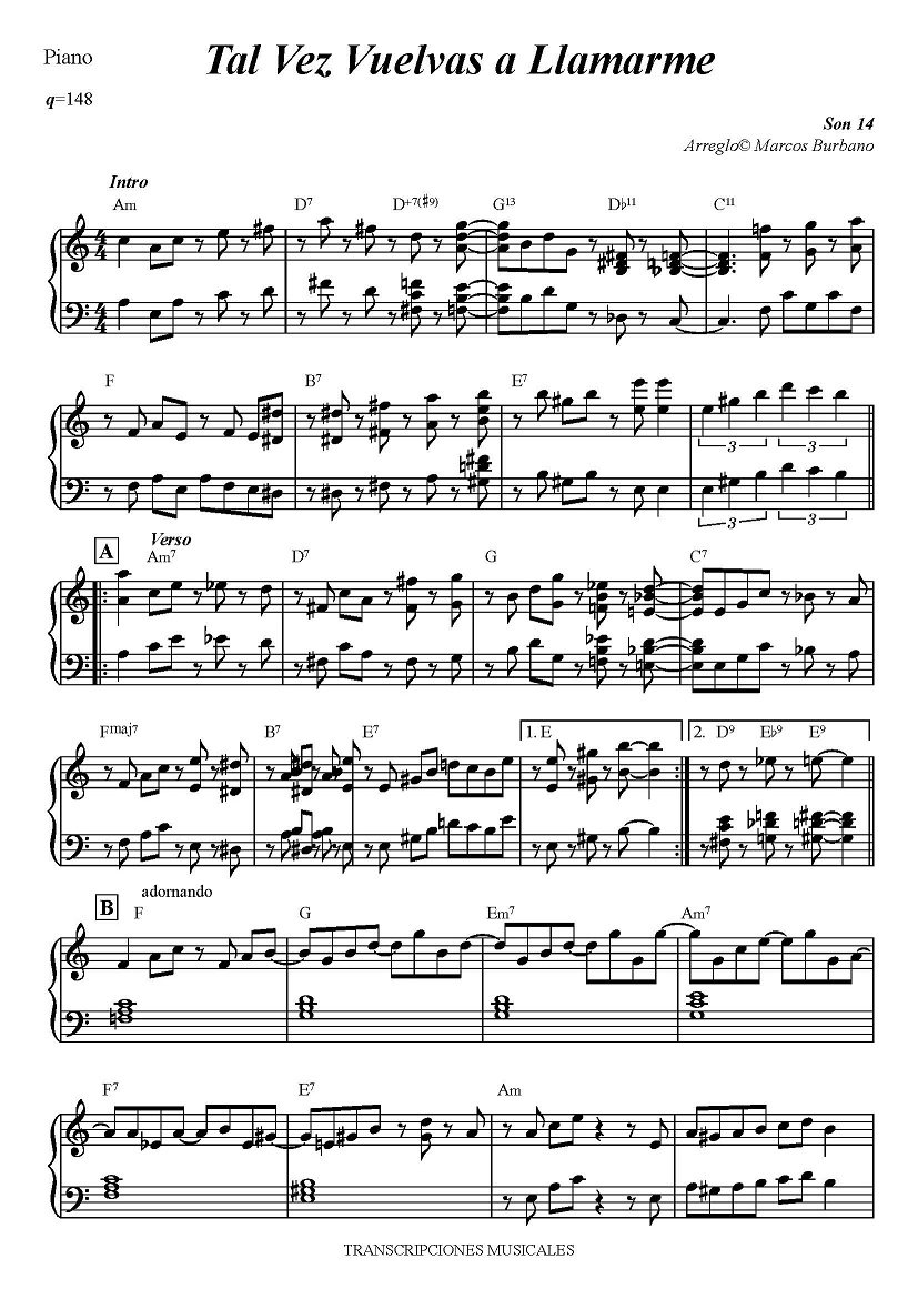TAL VEZ VUELVAS A LLAMARME – SON 14 VERSION MARCOS BURBANO